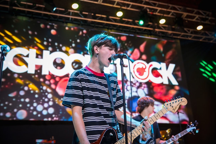 School of Rock students take individual lessons on traditional rock instruments like guitar and drums, but they also come together each week to learn how to play in a band with their peers. It’s what makes it such a special place. They spend months preparing rock songs, and shows like this one at Out of Bounds are where they get to step on stage and show off everything they’ve learned.