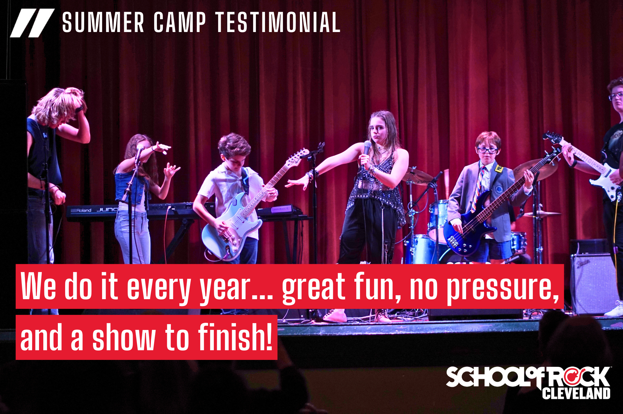 Great for students 9-18 years old who play at an intermediate level or above. Evaluation is required for non-School of Rock students. If you are unsure of your child's ability level, please contact us for an evaluation prior to signing up. Any current specials or discounts will be honored.