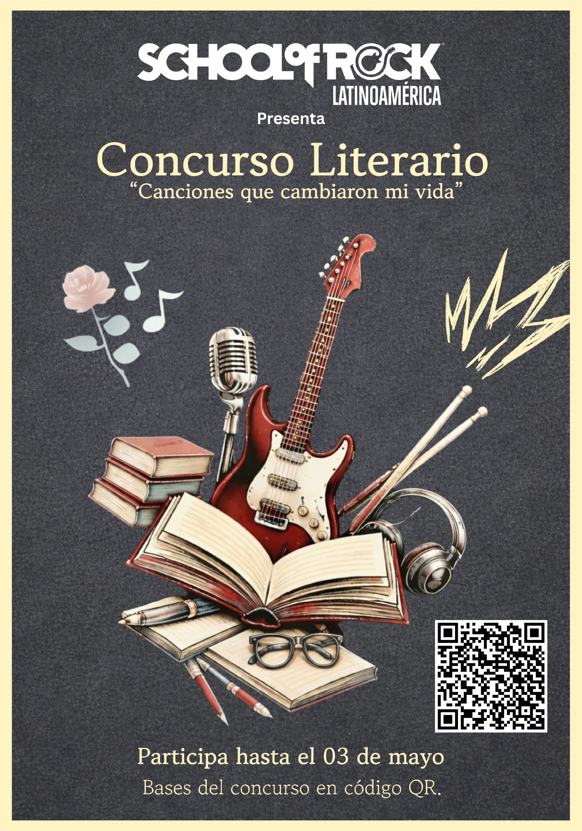 Si te gusta la lectura y escribir, esta es tu oportunidad de compartir tu talento con toda la red de School of Rock Latinoamérica. Por segundo año consecutivo, lanzamos nuestro concurso literario internacional, una instancia creada para que nuestros alumnos puedan expresar su creatividad, desarrollar sus habilidades y dar a conocer su voz a través de la escritura, en un espacio que celebra el arte en todas sus formas.