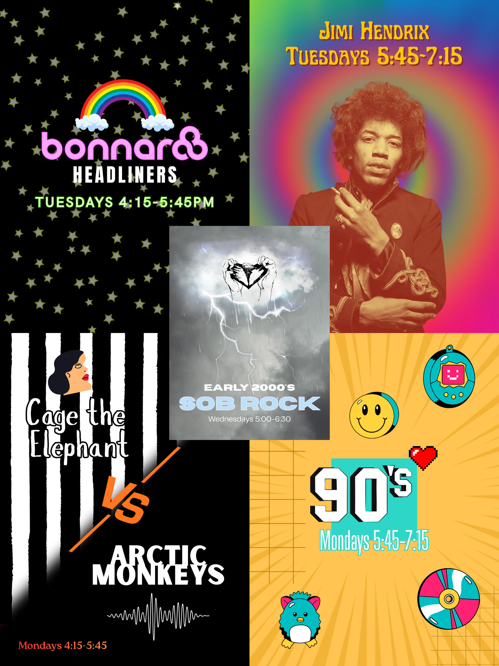 ARCTIC MONKEYS VS. CAGE THE ELEPHANT, Mondays 4:15-5:45PM