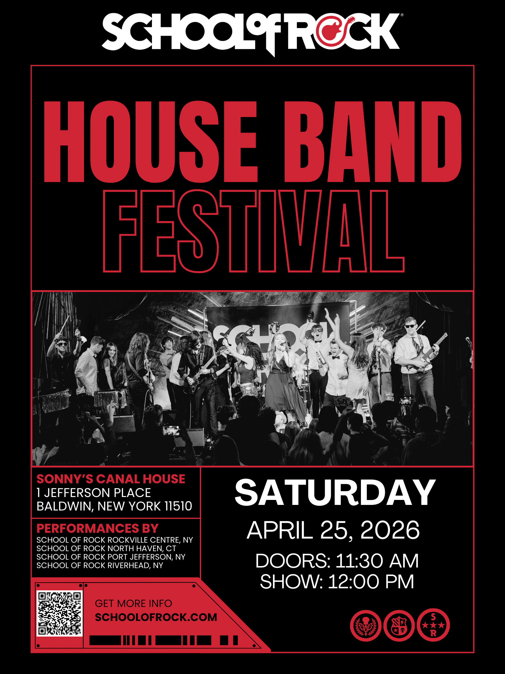 TripWire, the House Band made up of students from School of Rock Huntington, School of Rock Queens, School of Rock Rockville Centre, School of Rock Roslyn and School of Rock Syosset/Oyster Bay will be taking the stage with the House Bands of School of Rock North Haven, CT, School of Rock Port Jefferson, NY, and School School of Rock Riverhead, NY for an afternoon of killer music!