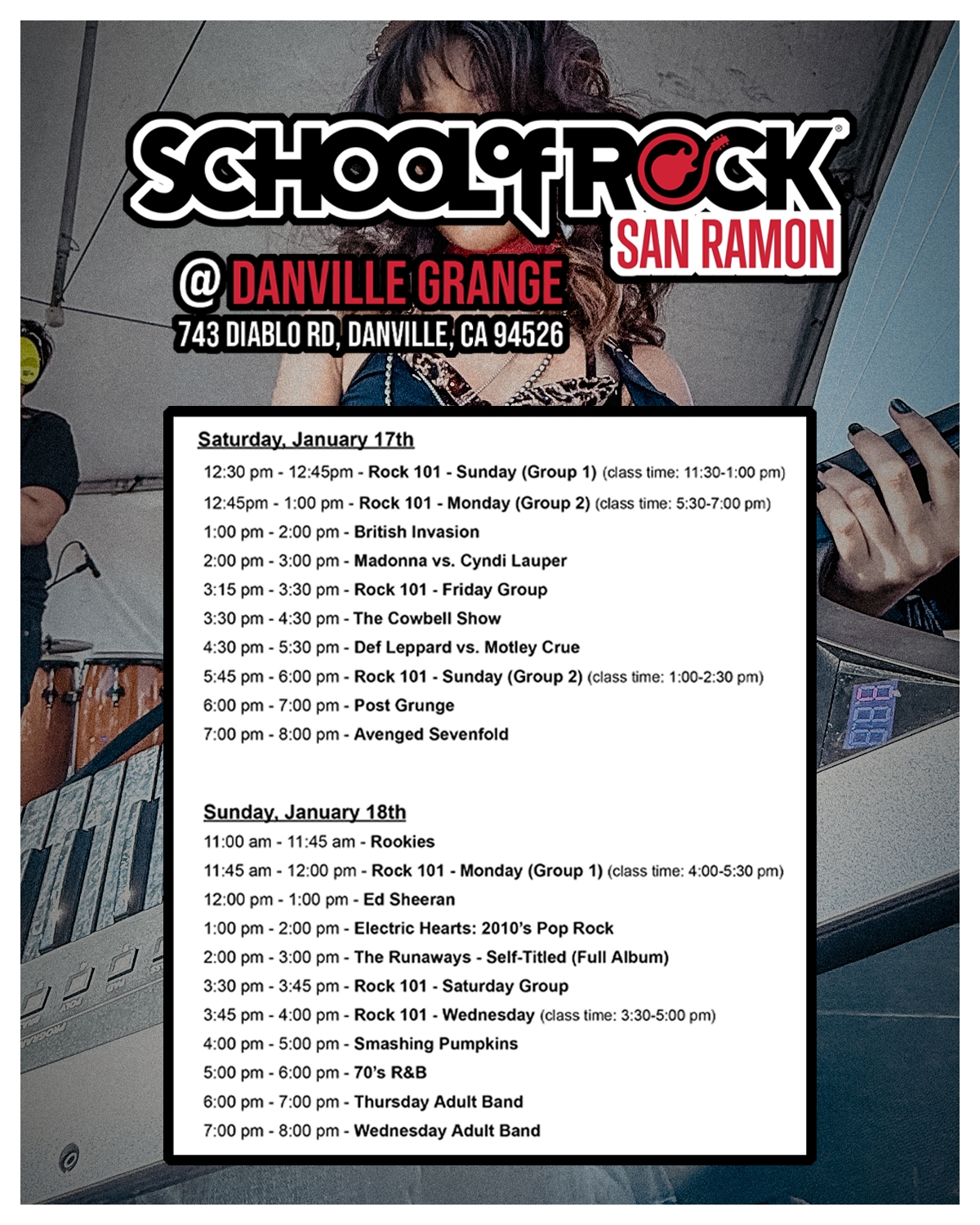 COME CHEER ON OUR STUDENTS AS THEY PERFORM THE MUSIC THEY’VE BEEN REHEARSING ALL SEASON LONG. THE DANVILLE GRANGE HALL WILL BE ALIVE WITH LIVE MUSIC, COMMUNITY, AND A WHOLE LOT OF ROCK ENERGY – SO GRAB YOUR FRIENDS, BRING THE FAMILY, AND JOIN US FOR A WEEKEND OF UNFORGETTABLE PERFORMANCES!
