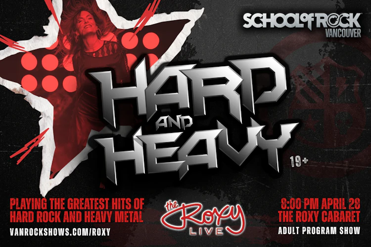 Get ready for a loud night at The Roxy! School of Rock Vancouver’s Adult Performance bands hit the stage for “Hard and Heavy”, showcasing The Greatest Hits of Hard Rock and Heavy Metal. This is a 19+ show packed with big riffs, driving drums, and powerful vocals for Vancouver’s metal and rock fans. Grab a drink, get close to the stage, and enjoy a night of live music done right!