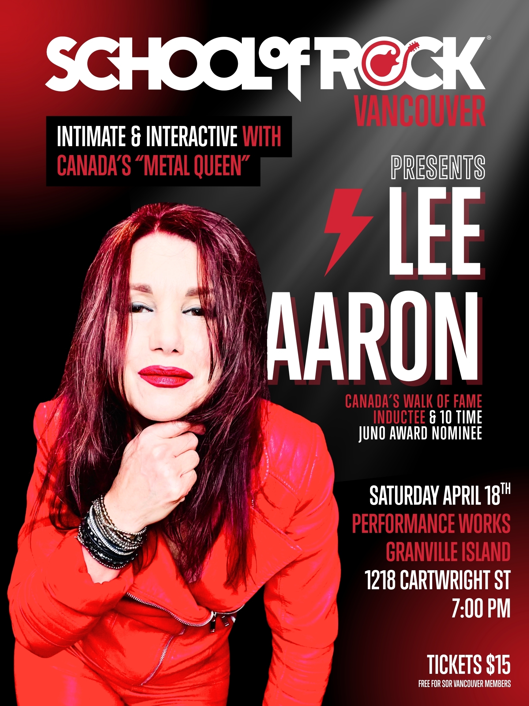 To top it all off, Lee Aaron will perform select songs alongside the School of Rock Vancouver House Band, giving students the rare opportunity to share the stage with a true Canadian rock icon.